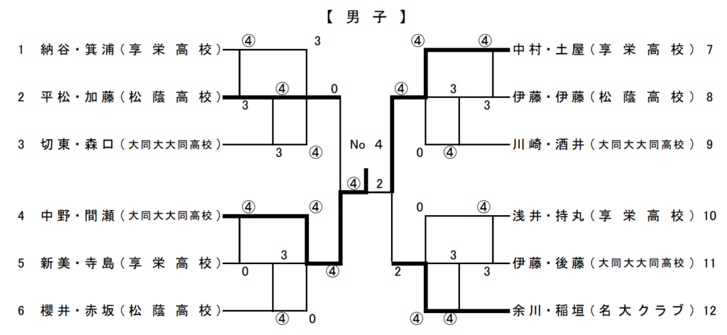 準決勝② 中村・土屋(享栄高校) ④-2 余川・稲垣(名大クラブ)